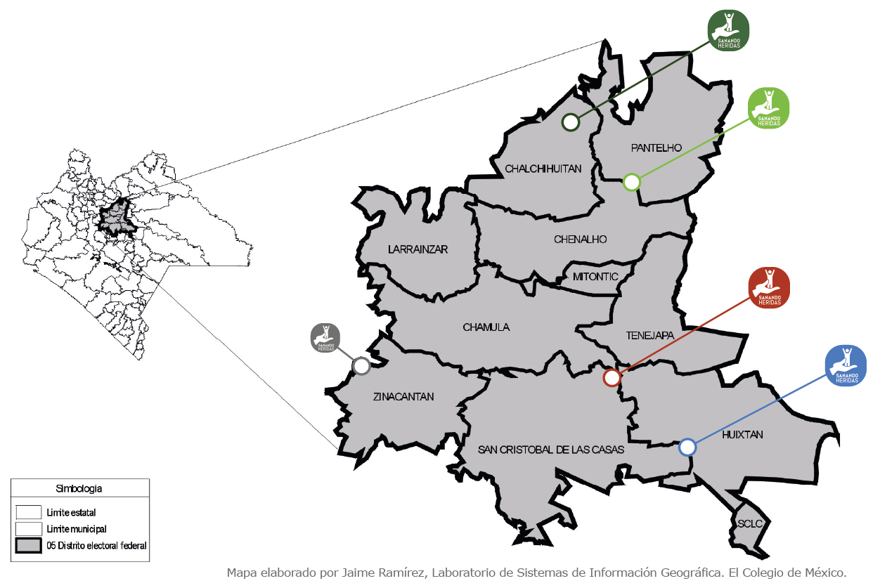 4 municipios en 6 localidades de la región de los Altos de Chiapas y en la clínica